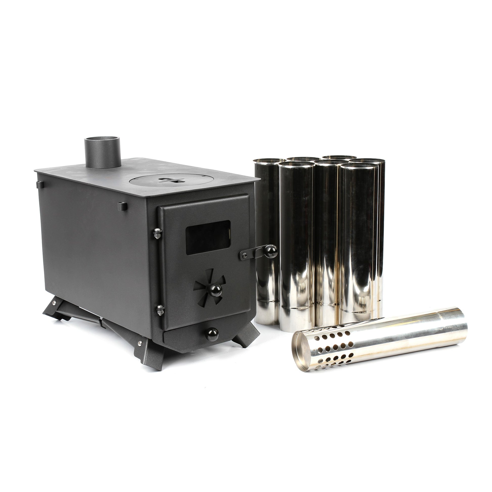 Haghus 150 kamina on monella tapaa uudistettu kaminamalli. Se sopii telttasaunaan kiukaaksi, pilkkitelttaan lämmittämiseen, tai muihin vastaaviin käyttötarkoituksiin. Yhdellä ja samalla kaminalla hoituu lämmitys, ruuan laitto ja jopa saunan lämmittäminen, kun asennat siihen lisävarusteena saatavat kivihäkit sivulle ja päälle. Lisävarusteena kaminaan löytyy myös vesivaraaja veden lämmittämistä varten. Haghus 150 kamina on siis hyvin monipuolinen laite, jolle on todella laajasti eri käyttötarkoituksia.Kaminaan on suunniteltu 4 vahvistettua, alle taittuvaa jalkaa mikä tekee siitä kuljetusystävällisen. Kuljettamiseta helpottaa myös se, että kaikki kamiinan piipun osat mahtuvat kuljetuksen/säilytyksen ajaksi kaminan sisään. Kaminassa myös tuhkaluukku, joka toimii myös vedon säätimenä. Tähän malliin olemme myös kasvattaneet piipun halkaisijaa 60mm:stä 70mm. Tämä yhdessä vetoluukun kanssa tarjoaa erinomaisen vedon!Itse kaminan mitat on mietitty sen mukaan, että Suomessa eniten myyty klapikoko mahtuu hyvin pesään.Kaminaan saatavilla valikoima erilaisia lisävarusteita, kuten kivihäkit kiuaskiviä varten, sivuritilät ja lämminvesivaraaja.Tuhka/-vetoluukku +arinaKamiinan korkeus piipun kanssa, käyttökunnossa n. 260cmPelkän piipun pituus käyttökunnossa 223cm8 -osainen piippu (7+1 päätykappale)Yhden piippuosan pituus 32,5cmPiipun halkaisija 70mmPaino kaikkine osineen 14,5kgMateriaali teräs, päällyskansi 3mm, muualta 2mmPiippu ruostumatonta terästäKaminan mitatPituus 41,5cmLeveys 25,7cmKorkeus 36,5cm