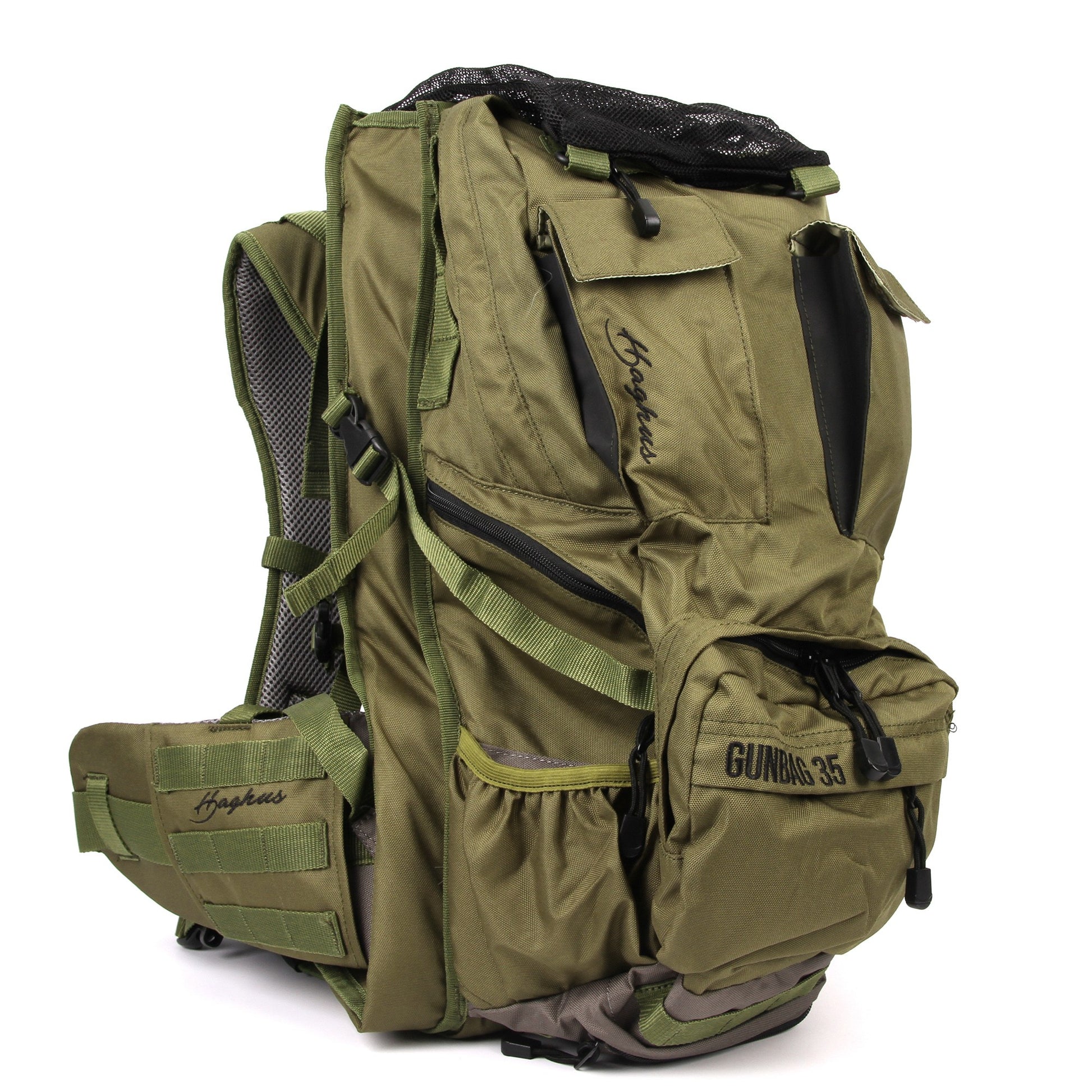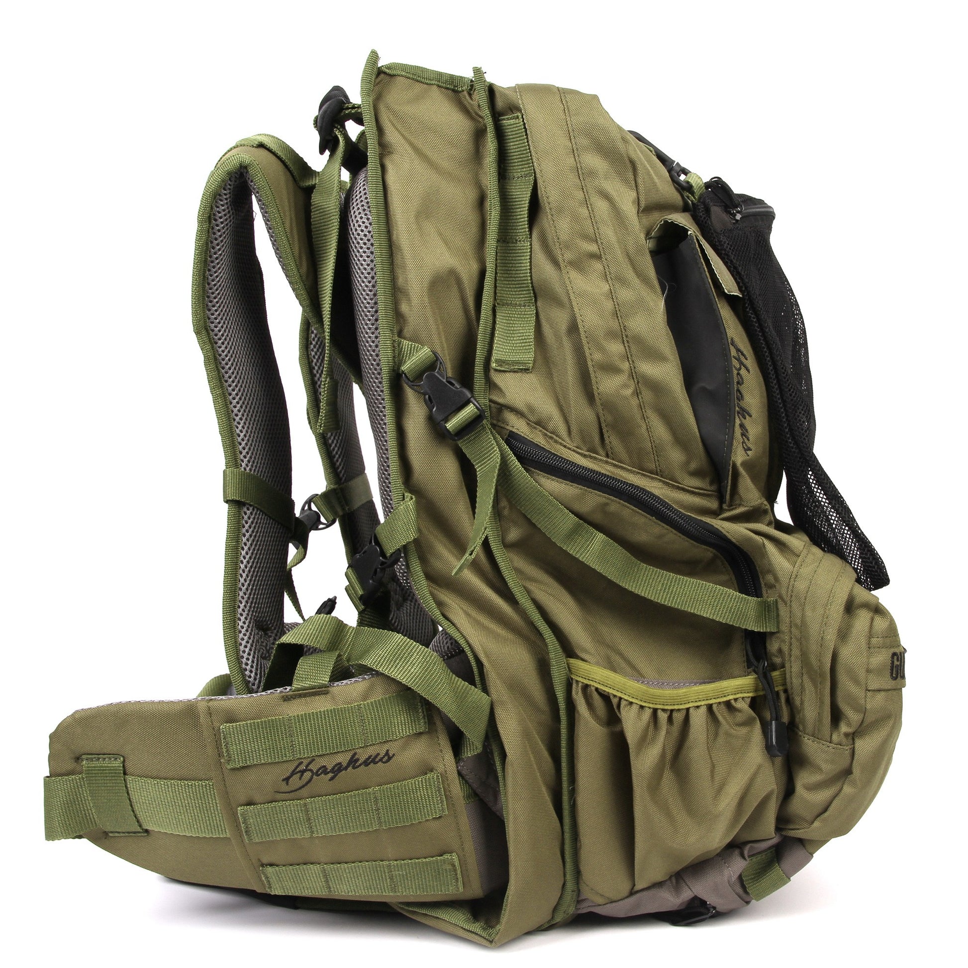 Haghus Korpimäki 35 on metsämiehen päivärinkka, jossa on integroitu asepussi vakiovarusteena. Voit pitää asetta repun asepussissa kävellessäsi, tai esim. pitää käsissäsi haulikkoa, ja kivääri on selässäsi valmiina pidempiinkin laukauksiin.Repun materiaali on erikoisvahvaa, ja tehty kestämään kovaakin käyttöä. Repun lukot, vetoketjut, säätimet jne. ovat myös premium-luokkaa. Repussa tulee mukana sadesuoja jota voit käyttää sateen sattuessa tai suojauduttaessa lialta. Repun sivutaskusta löytyy kätevä “näkkäri” istuma-alusta, tämä on erityisesti vanhempien jahtimiesten mieleen. Korpimäki 35:n asepussin saa umpinaiseksi siinä olevan resorin avulla. Tämä mahdollistaa aseen kuljettamisen laillisesti repussa auton sisällä ajon aikana, kun ase on kokonaan pussissa. Repun taskusta löytyy kätevä verkkopussi, jonka voi kiinnittää repun ulkopuolelle. Pussi on tarkoitettu esim. riistan tai likaisten vaatteiden kuljetukseen. Repun kantolaite omaa monipuoliset säädöt. Säätöjen avulla reppu saadaan optimoitua juuri sopivaksi käyttäjälleen. Lantiovyö lähtee tarvittaessa irti, jos sitä ei tarvita. Repun kaksi etutaskua on kooltaan juuri kiväärinpanoslaatikon kokoiset, sekin hyvä tietää. Iso tasku edessä on toimiva monille varusteille, tarvikkeille ja pikkutavaroille.Haghus Korpimäki 35 on monipuolinen reppukokonaisuus moneen käyttötarkoitukseen.Kestävä materiaali ja ompeleetVedenpitävät materiaalitHyvä ja monipuolinen kantolaite Asepussi vakiona Sadesuoja vakionaIstuma-alusta vakionaVerkkopussiPanosvyöHyvät taskutVahvat vetoketjutHelppo ampuaKiinnityslenkkejäTilavuus n. 35 litraa.
