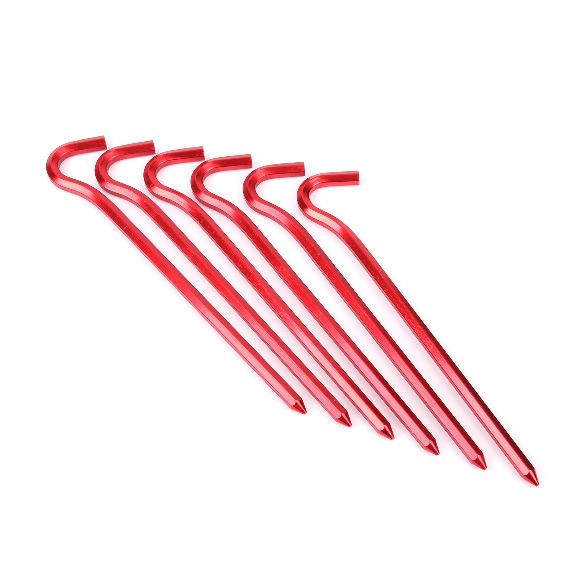 Kuusikulmaiset telttakiilat isolla C-muotoisella päällä tekee teltan kiinnittämisen helpoksi, vaikka et olisi mikään mestari narujen kanssa.Sinun ei tarvitse olla huolissaan, että teltan narut luistaisivat pois telttakiiloista keskellä yötä. Kuusikulmainen telttakiila on helppo painaa maahan ja ei ne eivät liiku helposti.Alumiiniset telttakiilat ovat vahvat ja kestävät, sekä tekevät telttailusta entistä miellyttävämpää.Tekniset tiedot:Materiaali: 7001 alumiiniVäri: Eloksoitu siniseksiPituus: 17.5cmHalkaisija: 0.6cmC-lenkin halkaisija: 3.4cmPaino: 15gPakkauksessa 6kpl