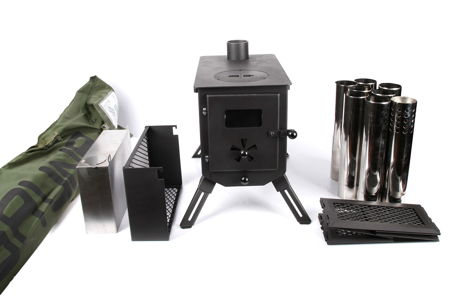 Haghus Telttasauna ComboValmis telttasaunapaketti sille, joka haluat pystyttää saunan nopeasti ja helposti käytännössä mihin vain. Myös liikuttelu paikasta toiseen onnistuu vaivattomasti, koska pakkaus on nopea kasata tai purkaa. Telttasauna kuljetetaan sen mukana tulevassa kantokassissa salkoineen. Kamina kasautuu pieneen pakettiin taittuvine jalkoineen ja kaikki piipun osat mahtuvat kaminan pesään kuljetuksen/ säilytyksen ajaksi. Lisäksi mukana tulevat vielä vesisäiliö sekä kivihäkit, jotka on tarkoitettu kyseisen Haghus Kamina 150 mallin kanssa. Näillä lisävarusteilla muunnat kaminan oikeaksi kiukaaksi!Haghus Telttasaunacombo paketti myydään edulliseen yhteishintaan, mutta halutessasi kaikki sen osat on tilattavissa myös erikseen, mikäli et tarvitse kaikkia sen osia. Pakettina setti on kuitenkin edullisempi ostaa kuin kaikki erikseen!Kamina 150:Haghus 150 kamina on monella tapaa uudistettu kaminamalli. Se sopii telttasaunaan kiukaaksi, pilkkitelttaan lämmittämiseen, tai muihin vastaaviin käyttötarkoituksiin. Yhdellä ja samalla kaminalla hoituu lämmitys, ruuan laitto ja jopa saunan lämmittäminen, kun asennat siihen lisävarusteena saatavat kivihäkit sivulle ja päälle. Lisävarusteena kaminaan löytyy myös vesivaraaja veden lämmittämistä varten. Haghus 150 kamina on siis hyvin monipuolinen laite, jolle on todella laajasti eri käyttötarkoituksia.Kaminaan on suunniteltu 4 vahvistettua, alle taittuvaa jalkaa mikä tekee siitä kuljetusystävällisen. Kuljettamiseta helpottaa myös se, että kaikki kamiinan piipun osat mahtuvat kuljetuksen/säilytyksen ajaksi kaminan sisään. Kaminassa myös tuhkaluukku, joka toimii myös vedon säätimenä. Tähän malliin olemme myös kasvattaneet piipun halkaisijaa 60mm:stä 70mm. Tämä yhdessä vetoluukun kanssa tarjoaa erinomaisen vedon!Tuhka/-vetoluukku +arinaKamiinan korkeus piipun kanssa, käyttökunnossa n. 260cmPelkän piipun pituus käyttökunnossa 223cm8 -osainen piippu (7+1 päätykappale)Yhden piippuosan pituus 32,5cmPiipun halkaisija 70mmPaino kaikkine osineen 14,5kgMateriaali teräs, päällyskansi 3mm, muualta 2mmPiippu ruostumatonta terästäKaminan mitatPituus 41,5cmLeveys 25,7cmKorkeus 36,5cmTelttasauna:Mikä sen mukavampi kuin sauna retkellä. Telttasaunalla se onnistuu kätevästi. Saunomaan sopii hyvin 4 henkilöä, kuusikulmion mallisen teltan leveys on 240cm, harjakorkeus säädettävissä keskisalosta 192-215cm välillä. Sivusalkojen korkeus 145cm. Valmistettu palamattomasta polyesterista. Sisältää alumiiniset telttasalot, keskisalon, narut, kiilat ja reppumaisen kantopussin. Helppo ja nopea pystytys. Paino 8.9kg.Tekniset tiedot:Paino vain 8,9kgHarjakorkeus säädettävissä keskisalosta 192-215cm välilläSivusalkojen korkeus 145cmKuusikulmaisen teltan leveys 240cmValmistettu palamattomasta polyesteristäLattian pinta-ala n. 5m2Katon materiaali 50/50 CO/PES ripstop palosuojattuSeinien materiaali 210D Polyester palosuojattuSisältö: Teltta, telttasalot, keskisalko, narut, kiilat ja kantokassi.Kivihäkit:Kivihäkit Haghus 120 & 150 kaminoihin kiuas käyttöä varten. Kivihäkkien avulla muutat kamiinasi kätevästi kiukaaksi telttasaunaa varten. Pakkauksessa kaksi häkkiä, yksi kamiinan sivulle ja toinen kokoontaittuva häkki päälle. Asenna vain häkit paikalleen ja lisää kivet. Materiaali vahvaa terästä.Materiaali teräsPäälle tulevan häkin koko 345x305x155mm, paino 1,5kgSivulle tulevan häkin koko 100x310x210mm, paino 1,2kgSopii Haghus kaminoihin 120 & 150Pakkaus ei sisällä kiviäVesisäiliö:Haghus 120 & 150 mallin kaminoihin sopiva vesivaraaja. Varaajan tilavuus on noin 4,5L, joka on riittävä telttasaunaan. Materiaali vahvaa ruostumatonta terästä.Tilavuus noin 4,5LMateriaali ruostumaton teräsAlakulmassa hanaIso täyttöaukkoSopii Haghus kaminoihin 120 & 150