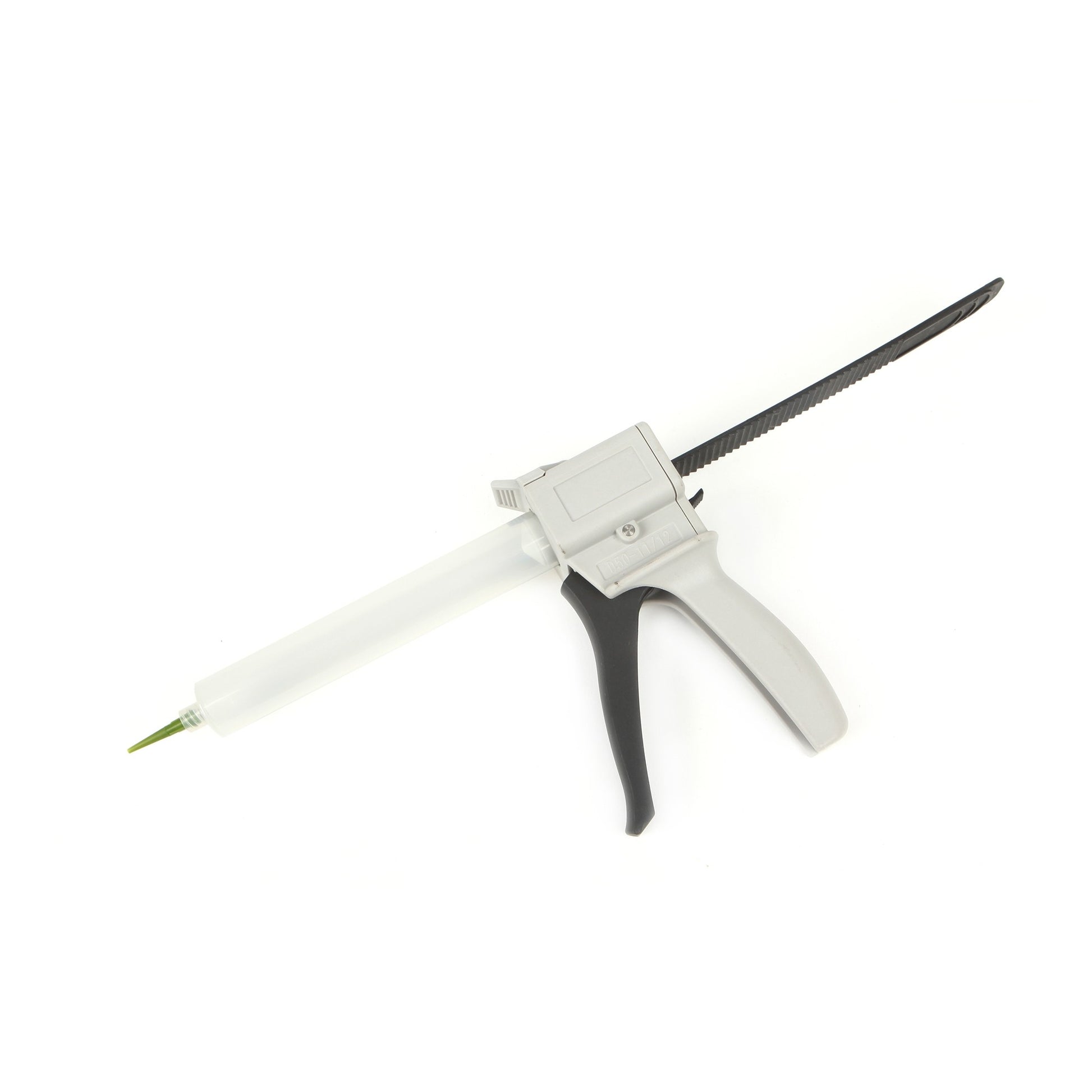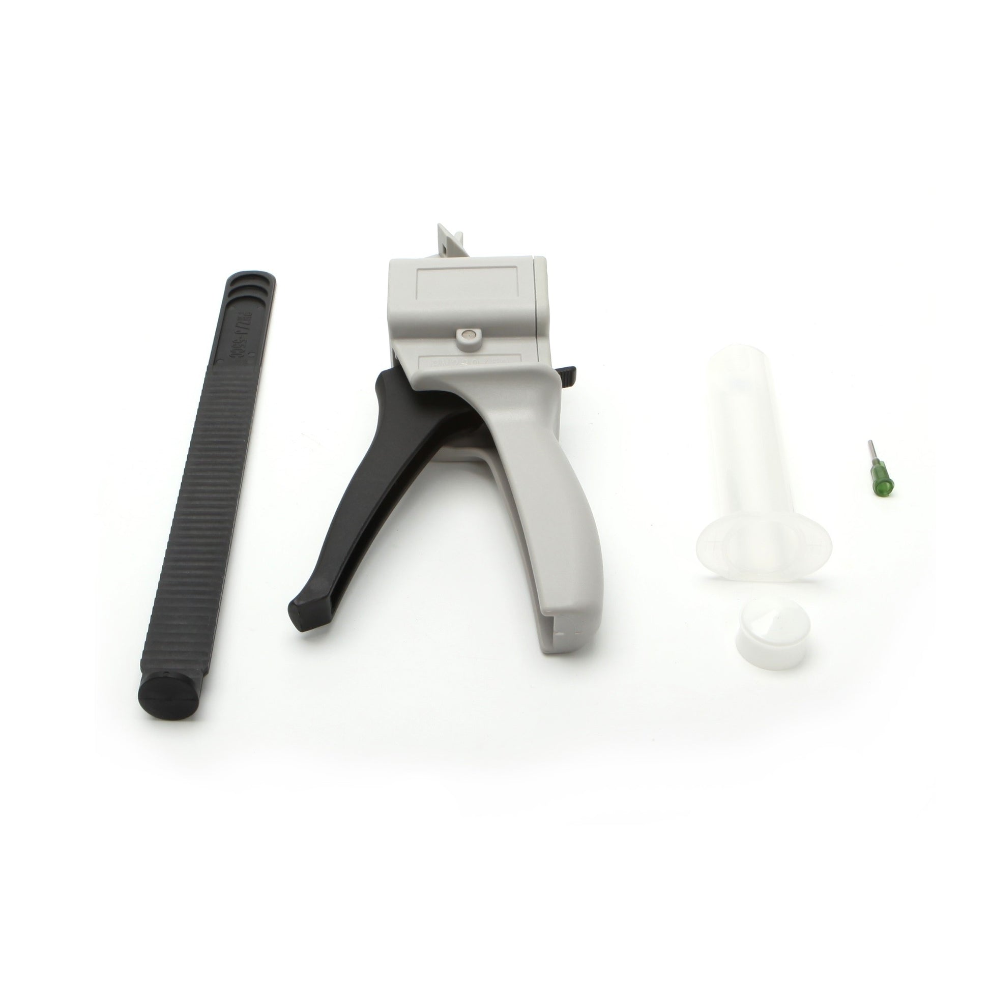 Kahva puristin liimojen ja muiden nesteiden levitykseen ja asennukseen. Kahvaosaan kiinnitetään erillinen 30cc tai 55cc säiliö johon myös liima tai levitettävä neste laitetaan. Säiliön kärkeen kiinnitetään joko muovinen tai metallinen neula. Materiaalin levittäminen on helppoa oli se sitten jäykkää tai notkeaa. Pakkaus sisältää kahvan sekä männän varren. Kuvassa olevat säiliö/sylinteri ja mäntä sekä neulat myydään erikseen.• Varmatoiminen liimapistoolin runko• Helpottaa ja nopeuttaa liimaustyötä. • Säiliöt ja kärjet myynnissä erikseen.• Säiliöitä kahdessa eri koossa• Neljä eri kärki vaihtoehtoa
