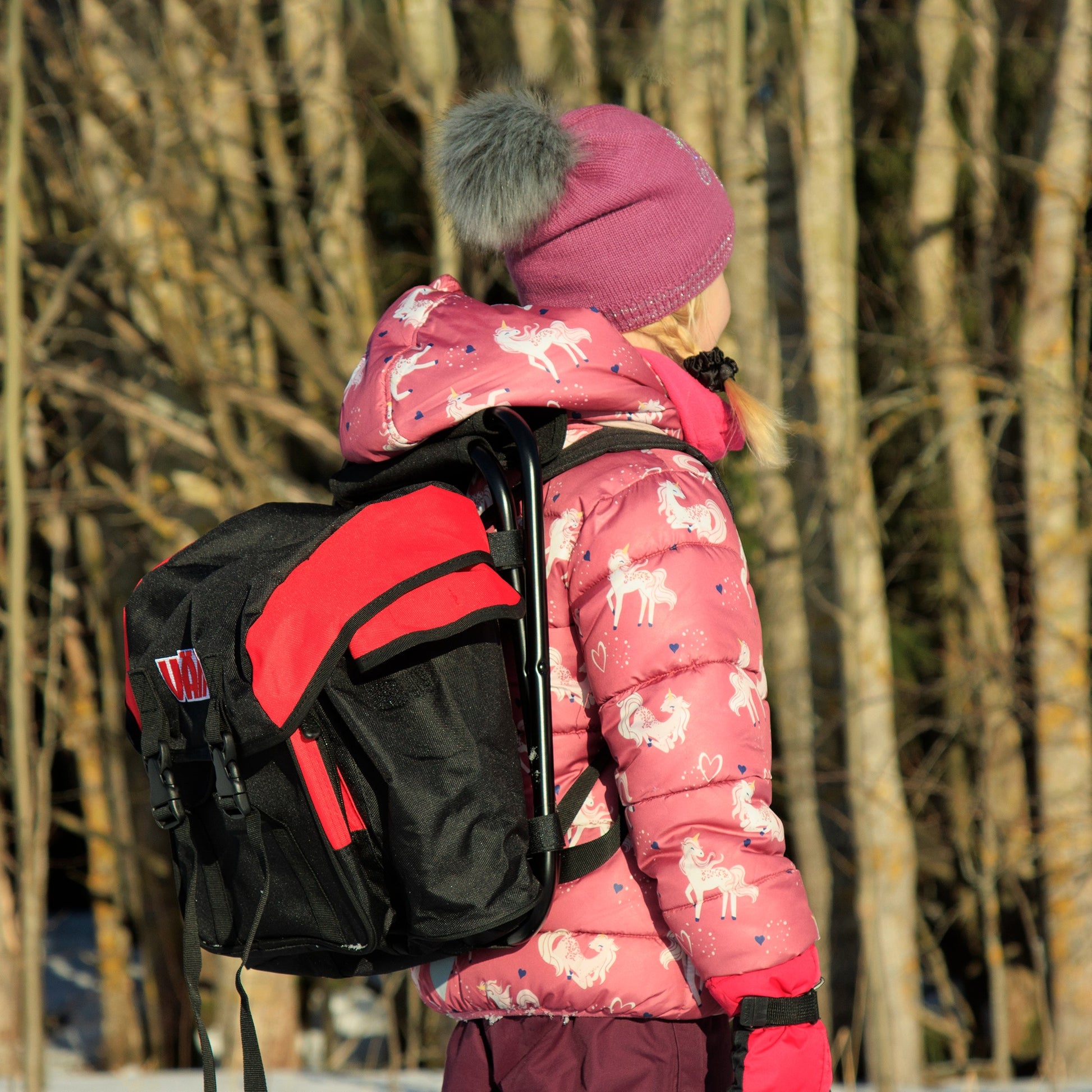 Perheen pienimmille suunniteltu matala ja näppärän kokoinen reppujakkara. Reppu on valmistettu 600D polyesterista. Päätaskun lisäksi siinä on yksi suuri etutasku sekä pienempi sivutasku. Pikkuväinö on alle 40cm korkea joka sopii täydellisesti perheen pienempien käyttöön. Kantolaite on myös suunniteltu lasten käyttöön. Pikkuväinöä on lasten helppo ja mukava kantaa ja näin pienet kalastajat saavat itse viedä välineensä jäälle. Toimii erinomaisesti ulkoilussa, tapahtumissa ja vaikkapa pienellä kävelyretkellä luonnossa. Repun tilavuus n.18litraa jonne mahtuu eväiden lisäksi myös kattava vaihtovaate tai muu tarvike setti.