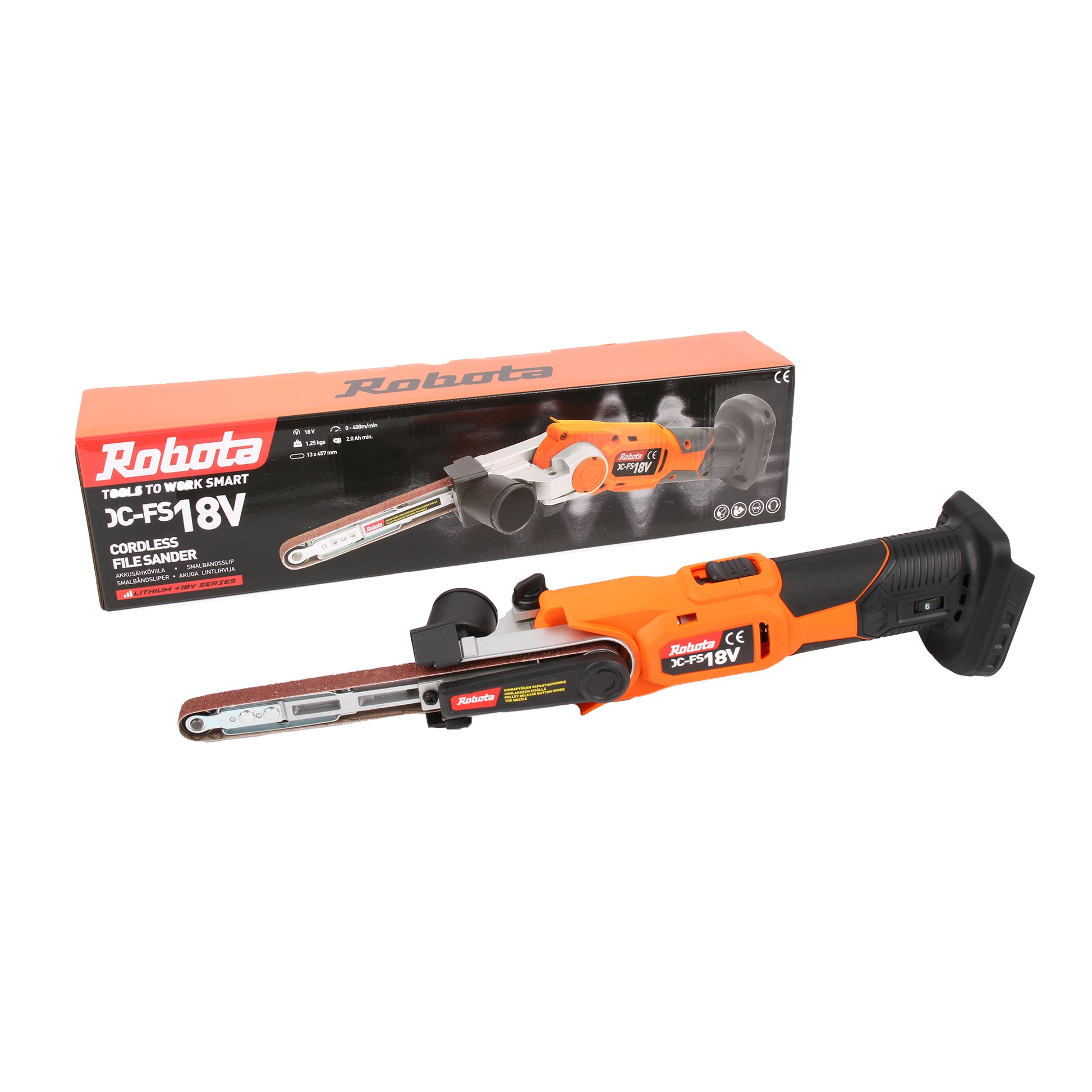 Robotan akkusähköviila säädettävällä kulmalla on kätevä apuväline siistiin jälkeen olipa kyseessä hionta, muotoilu tai viimeistely. Sähköviilalla voit työstää puuta, metallia tai muita materiaaleja.Tekniset tiedot:Jännite: 18 VMinimi akun koko: 2.0 AhNauhan nopeus: 0-400 m/ minPaino: 1.25kgHiomanauha: 13 x 457mm Ei sisällä akkua ja laturia.