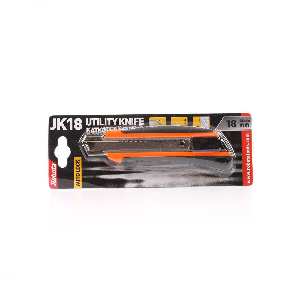 Robota tuo markkinoille edistyksellisen katkoteräveitsen kumisella otepinnalla. Veitsessä on ylivoimainen ja edistyksellinen DUAL LAZER SHARP -terä, joka leikkaa tarkasti yleisimmät materiaalit. Veitsen edistyksellinen kuminen otepinta on molemmin puolin veitsen runkoa, jolloin otteesta ja sen käytöstä tulee todella miellyttävää. Veitsen AUTO LOCK mekanismi varmistaa, että veitsi on aina lukittu kun sitä aletaan käyttämään. Painonappitoiminen terän vaihto tekee työskentelystä turvallista ja helppoa. Kokonaisuutena Robotan JK katkoteräveitset takaavat erinomaiset ominaisuudet ja ne mahdollistavat 25% tavallista pidemmän käyttöiän. Robotan JK sarja sisältää 2 eri katkoteräveistä, 25mm ja 18mm terillä.Tekniset tiedot:JK18 katkoteräveitsiTerän koko 18x100mmTerän vahvuus 0,5mmSisältää veitsen, terän ja 2 vaihtoterää