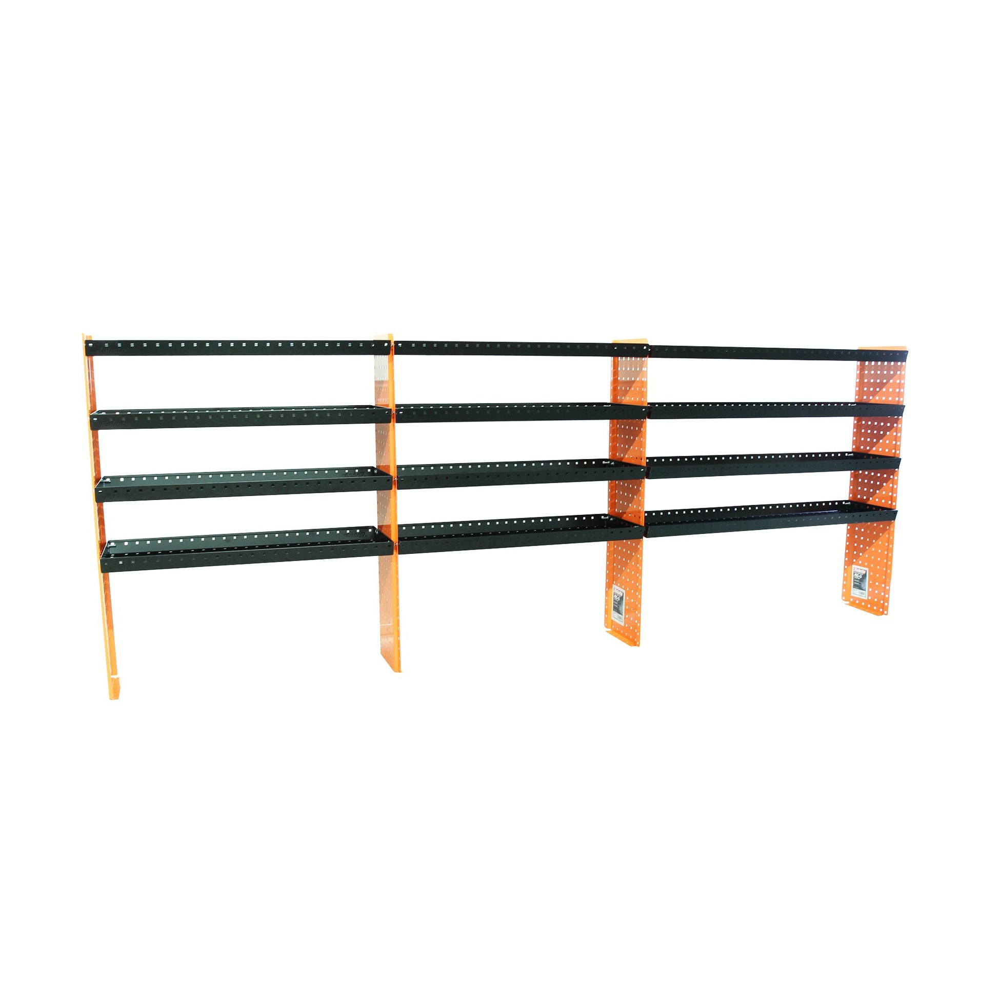 Robota VRS pakettiauton hyllyjärjestelmä on erittäin kätevä ja monipuolinen ratkaisu tehdä järkevät ja toimivat säilytystilat pakettiauton tavaratilaan. Hyllyjärjestelmän idea on modulaarinen eli järjestelmä koostuu eri mittaisista hylly- ja päätyosista joita yhdistelemällä saadaan aikaiseksi haluttu hyllyjärjestelmän koko. Hyllyjärjestelmään voidaan yhdistää muita komponentteja kuten muovista valmistettuja säilytyslaatikoita, tarvikepiikkejä ja muita tarvikkeita jolloin hyllyjärjestelmästä tulee käyttäjän tarpeisiin sopiva. Robota VRS hyllyjärjestelmän osat ovat valmistettu vahvasta teräksestäja ne on käsitelty pulverimaalaamalla. Näin saadaan kestävä ja näyttävä lopputulos.Ominaisuudet:- Hyllytasojen asennuskorkeudet ovat säädettävissä 38mm välein.- Hyllypäädyt jatkettavissa toisella päädyllä 38mm välein.Hyllyjärjestelmän tuotteet:- Pääty VRS-U 910x300mm- Pääty VRS-U 1200x300mm- Hylly VRS-S 390x420mm- Hylly VRS-S 700x325mm- Hylly VRS-S 960x325mm- Hylly VRS-S 1260x325mmTämä kokonaisuus sisältää tuotteetPääty VRS-U 1200x300mm x 4kplHylly VRS-S 960x325mm x 8kplHylly VRS-S 1260x325mm x 4kpl- Materiaali: pulverimaalattu teräs- Mitat:Korkeus 1200mmLeveys 3240mmSyvyys 325mm- Paino: 64 kgHyllyjärjestelmän päätykappaleita voi myös käyttää reikälevynä. Reikäjako levyssä 38mm, saatavana Robota reikälevytarvikkeita monipuolisesti, kuten erilaiset piikit ja pulloteline.Reikäjako yhteensopiva GWS ja ITAB reikälevy -tarvikkeiden kanssa.