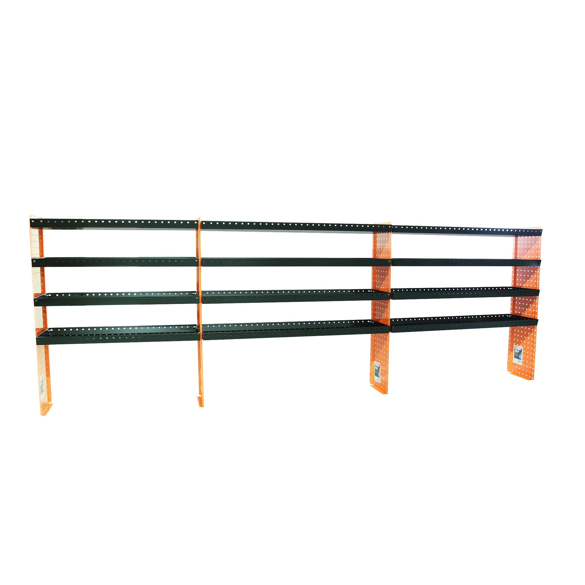 Robota VRS pakettiauton hyllyjärjestelmä on erittäin kätevä ja monipuolinen ratkaisu tehdä järkevät ja toimivat säilytystilat pakettiauton tavaratilaan. Hyllyjärjestelmän idea on modulaarinen eli järjestelmä koostuu eri mittaisista hylly- ja päätyosista joita yhdistelemällä saadaan aikaiseksi haluttu hyllyjärjestelmän koko. Hyllyjärjestelmään voidaan yhdistää muita komponentteja kuten muovista valmistettuja säilytyslaatikoita, tarvikepiikkejä ja muita tarvikkeita jolloin hyllyjärjestelmästä tulee käyttäjän tarpeisiin sopiva. Robota VRS hyllyjärjestelmän osat ovat valmistettu vahvasta teräksestäja ne on käsitelty pulverimaalaamalla. Näin saadaan kestävä ja näyttävä lopputulos.Ominaisuudet:- Hyllytasojen asennuskorkeudet ovat säädettävissä 38mm välein.- Hyllypäädyt jatkettavissa toisella päädyllä 38mm välein.Hyllyjärjestelmän tuotteet:- Pääty VRS-U 910x300mm- Pääty VRS-U 1200x300mm- Hylly VRS-S 390x420mm- Hylly VRS-S 700x325mm- Hylly VRS-S 960x325mm- Hylly VRS-S 1260x325mmTämä kokonaisuus sisältää tuotteet:Pääty VRS-U 1200x300mm x 4kplHylly VRS-S 960x325mm x 4kplHylly VRS-S 1260x325mm x 8kpl- Materiaali: pulverimaalattu teräs- Mitat:Korkeus 1200mmLeveys 3540mmSyvyys 325mm- Paino: 68 kgHyllyjärjestelmän päätykappaleita voi myös käyttää reikälevynä. Reikäjako levyssä 38mm, saatavana Robota reikälevytarvikkeita monipuolisesti, kuten erilaiset piikit ja pulloteline.Reikäjako yhteensopiva GWS ja ITAB reikälevy -tarvikkeiden kanssa.