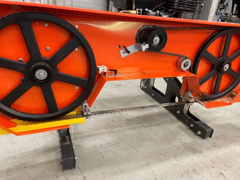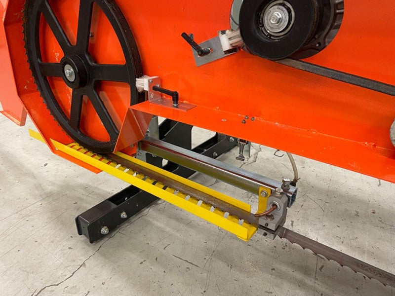 Nyt saatavana teräohjuri evo 1 mallin Robota kenttävannesahaan.Tällä lisävarusteella teränohjaimet voidaan saattaa lähemmäksi sahattavaa puuta jolloin sahauksen tarkkuus paranee entisestään. Kun terän vapaana juokseva alue on lyhyempi eli ohjain / tuenta tuodaan lähemmäksi tukkia terän mahdolliset värinät ja aaltoilut minimoidaan. Näin saadaan parempi sahausjälki aikaiseksi. Huom! Uusissa kenttävannesahoissa säädettävä teränohjain mukana vakiona.