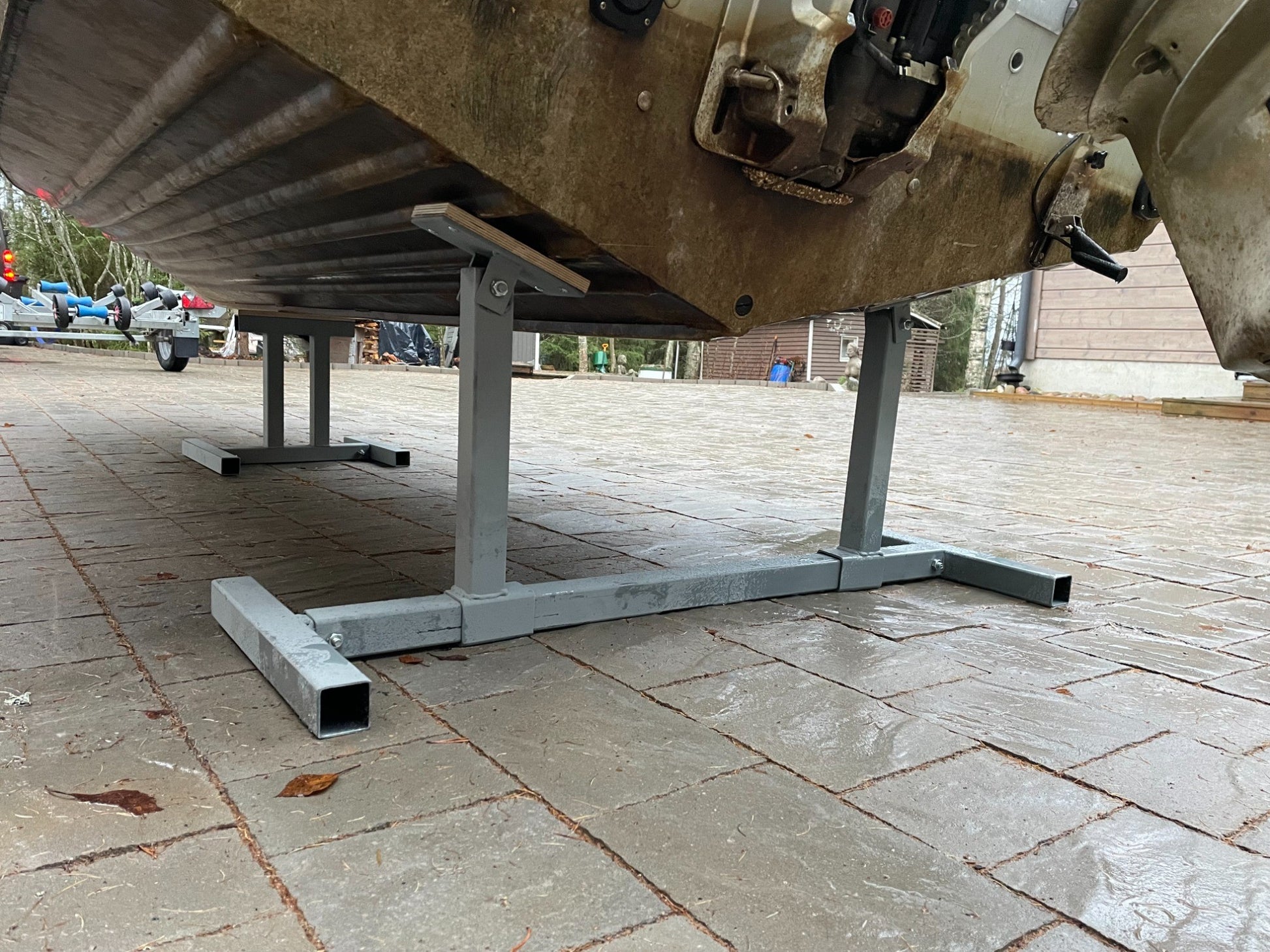 Vahvarakenteinen kasattava veneen takapukki Robotalta. Pukin rakenne on 50mm halkaisijaltaan olevaa teräspalkkia (seinämävahvuus 3mm). Venettä vasten tulevat tukevat osat ovat vaneria. Vanerien kulmat ovat säädettävissä tuettavan veneen mukaiseksi. Takapukin rakenne on säädettävä. Max. veneen paino 800kg. Robota veneen etupukki on ostettavissa erikseen. Pakkaus sisältää kasausohjeen.Tekniset tiedot:Rakenne: säädettäväPaino: n.18kgMitat: L:122cm K:55cm S:44,5cmMateriaali: teräs, vaneriPalkin vahvuus: 50mm (seinämävahvuus 3mm)