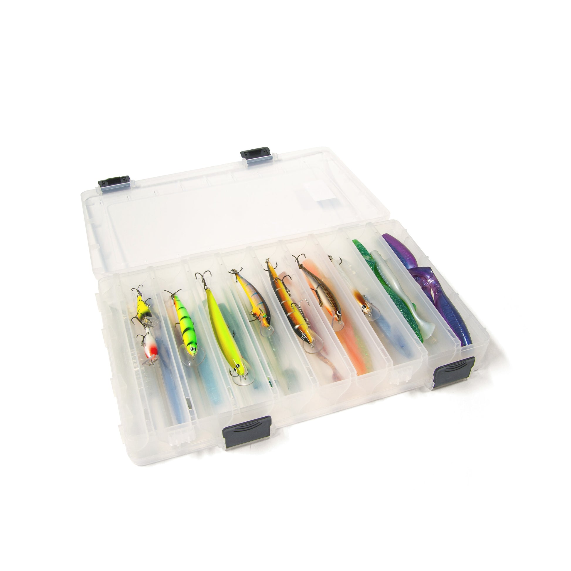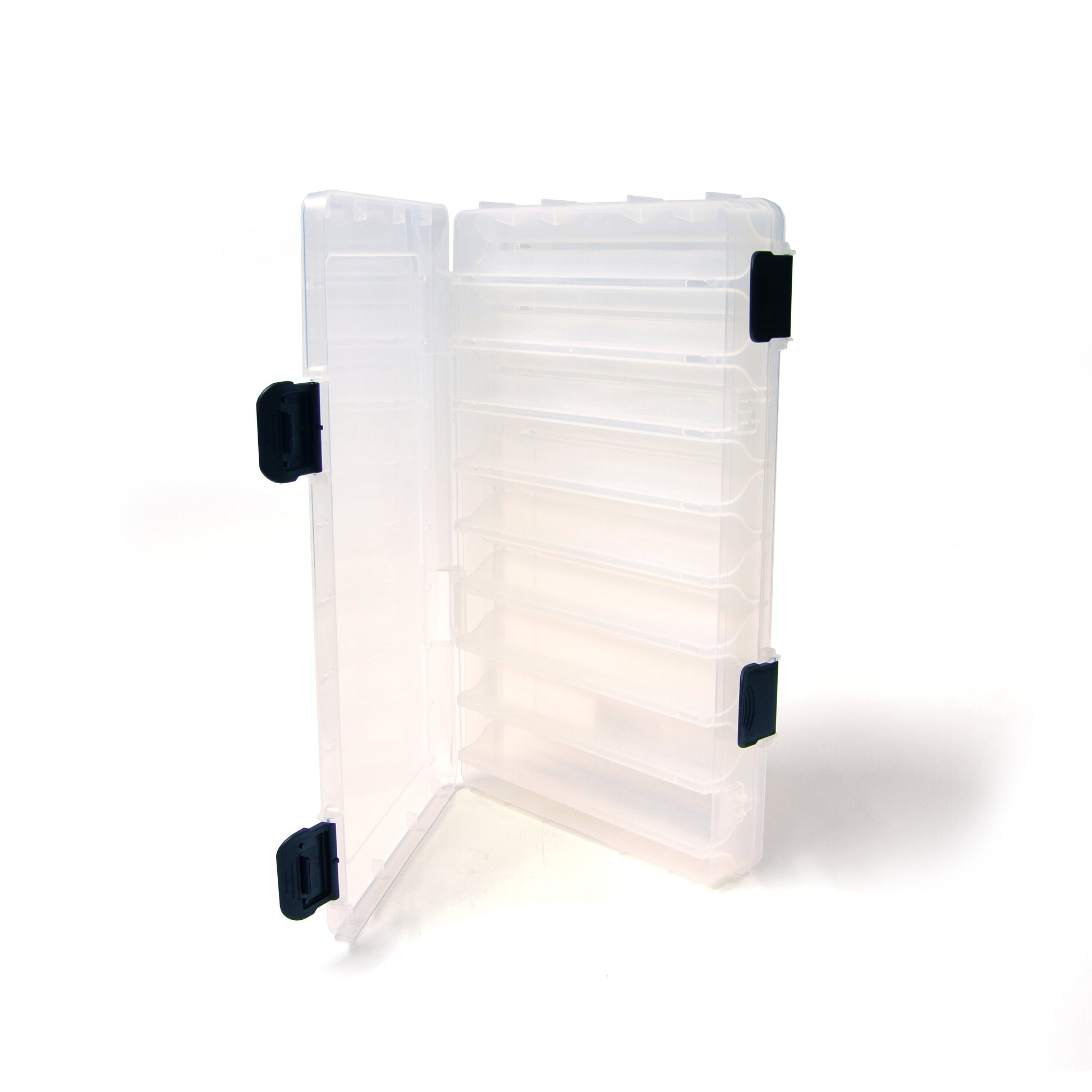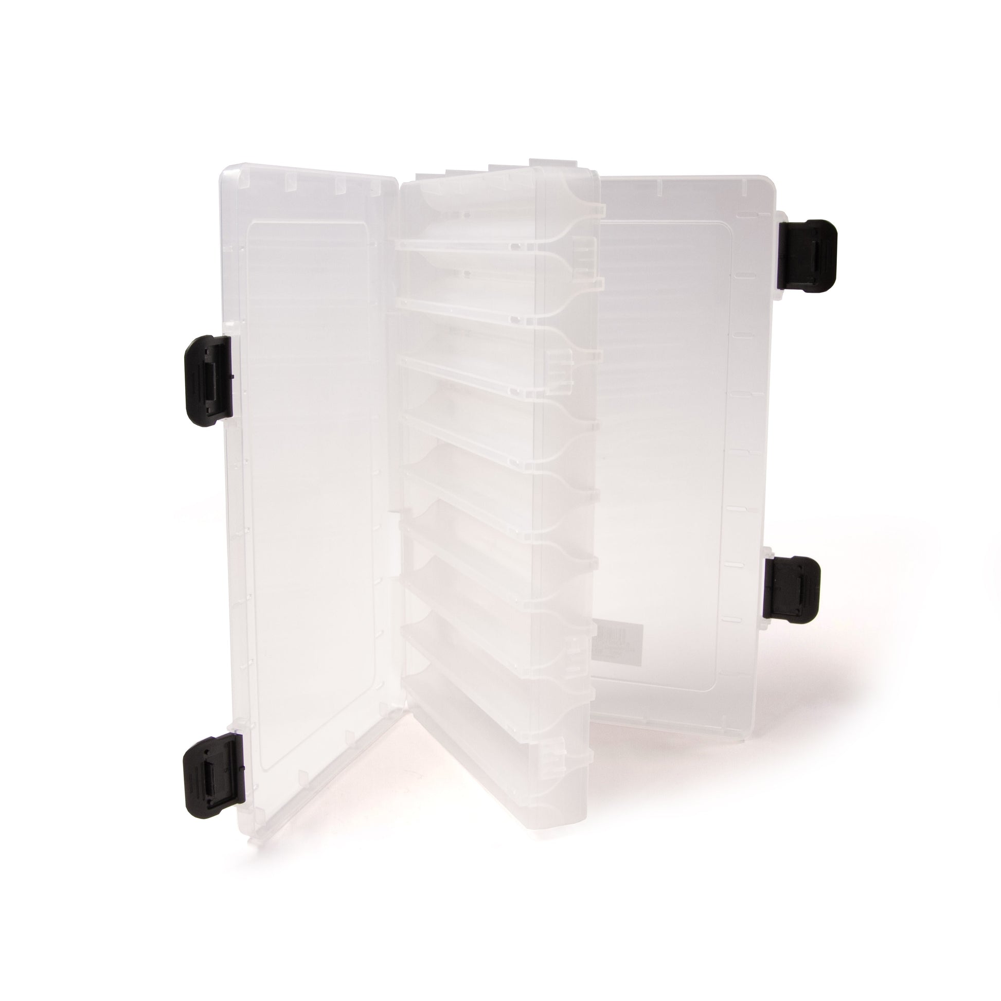 Kaksipuoleinen vieherasia johon pakkaat kätevästi vieheet mukaan. Asetelma säästää huomattavasti tilaa. Rasiaan saa suuren määrän vieheitä ja se menee esim. laukussa tai repussa pieneen tilaan.- Mitat: 355x230x50mm- 9 lokeroa per puoli
