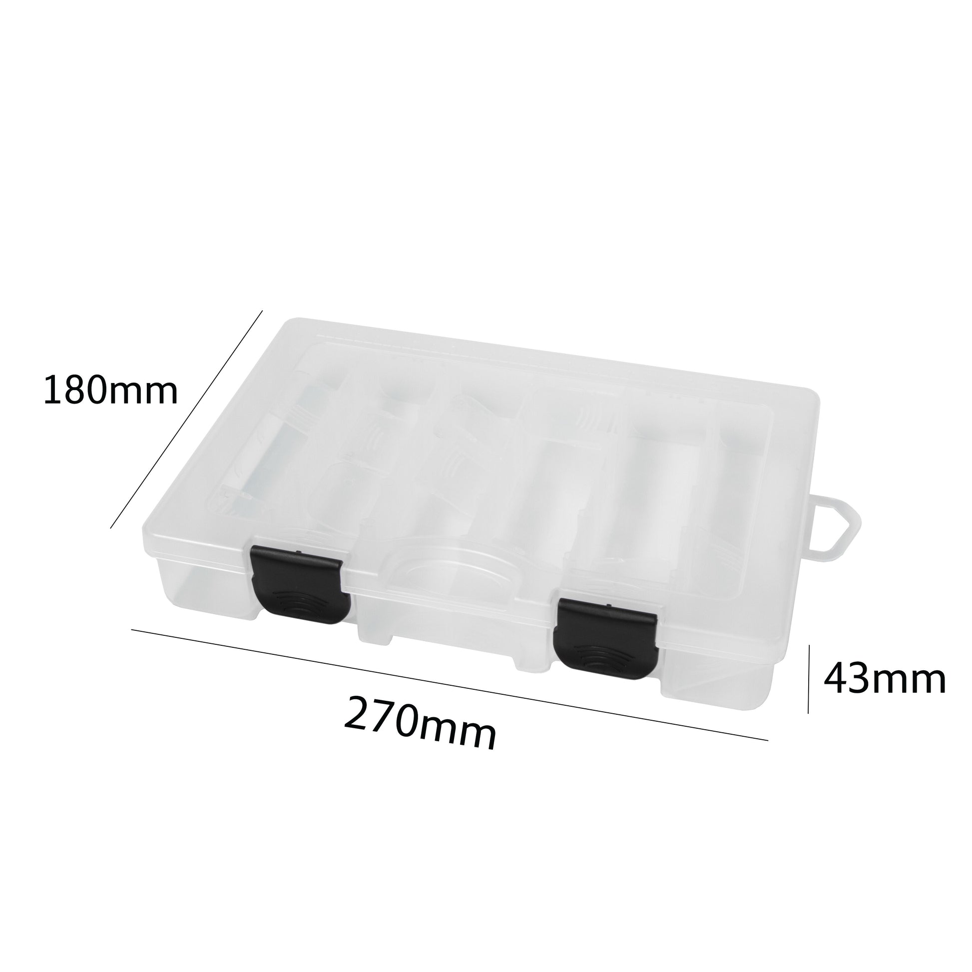 Laadukas rasia joka käy monille tuotteille kuten jigeille, jigipäille ja vieheille. Kestää hyvin myös painojen säilytyksen. Sisälokeroiden koko on muunneltavissa helposti.- Mitat 270x180x43mm- Säädettävät lokerot (väliseinät leveyssuuntaisesti)- Kestävät saranat ja toimiva lukitus