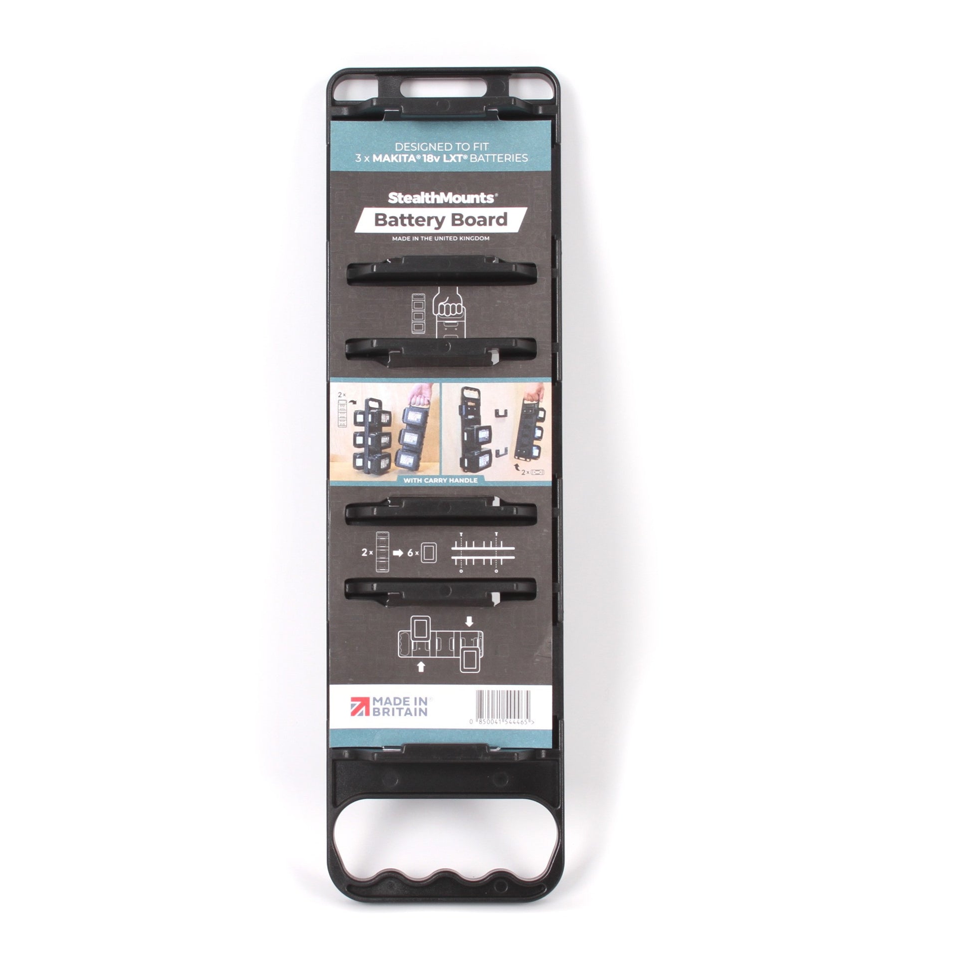 StealthMounts akunpidike kantokahvalla on suunniteltu Makita merkin 18v LXT akuille. Pidä akkusi järjestyksessä ja juuri siellä missä niitä tarvitset. Kantokahvaisella pidikkeelä saat vara-akut kätevästi mukaan. Pidikkeet on tehty vahvasta ruiskuvalutetusta ABS muovista jossa on asennus reiät. Akut klikkautuvat paikalleen ja niitä voi pitää missä tahansa kulmassa. Voidaan asentaa seinälle StealtMounts kiinnikkeillä josta akunpidike akkuineen on helppo ottaa mukaan. Kaksi akunpidikettä on myös helppo yhdistää yhdeksi 6-paikkaiseksi kantotelineeksi.