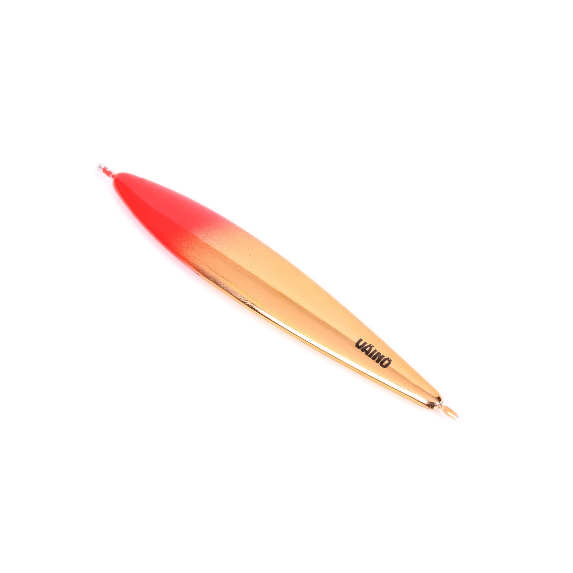 "Väinö kevennetty liukupilkki yhdistää samaan pakettiin kaksi viime vuosien muotitrendiä eli liukupilkkiominaisuuden ja kevennyksen. Metallisen ytimen päällä on reilu kerros muovia, joten 105-millisenäkin pilkki painaa vain 11 grammaa. Keveydestään huolimatta Väinö sukeltaa melko sutjakkaasti ja suoraviivaisesti, mutta terävillä nykyillä sen saa myös liitelemään sivusuunnassa. Pakkauksessa mukana tulee fluorihiilitapsiin solmittu kultamorri, onpa tapsissa jo pilkin kiinnityksessä tarvittavat silikoniputken pätkätkin valmiiksi pujotettuna. Kannattaa kokeilla erityisesti ahventen narraamisessa."