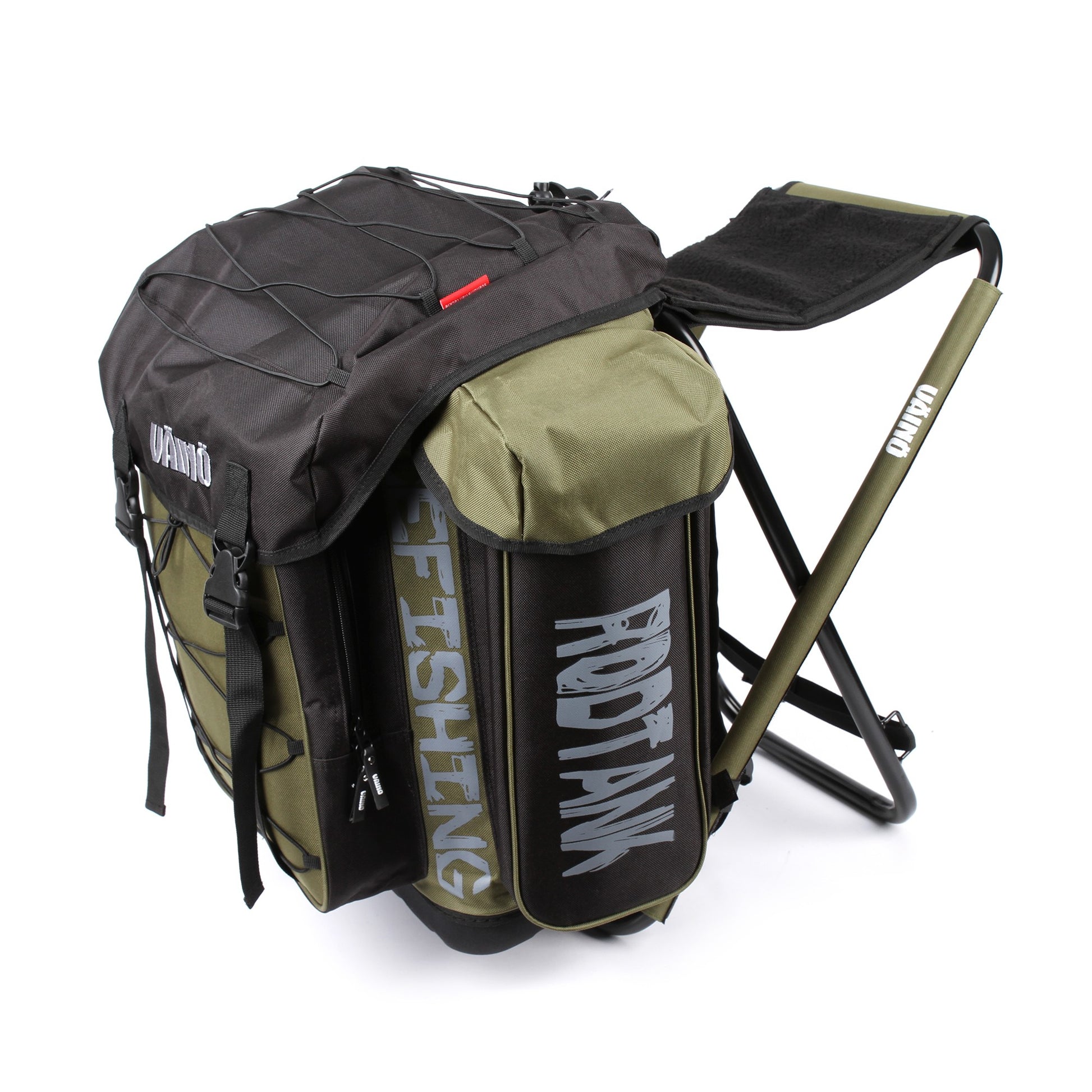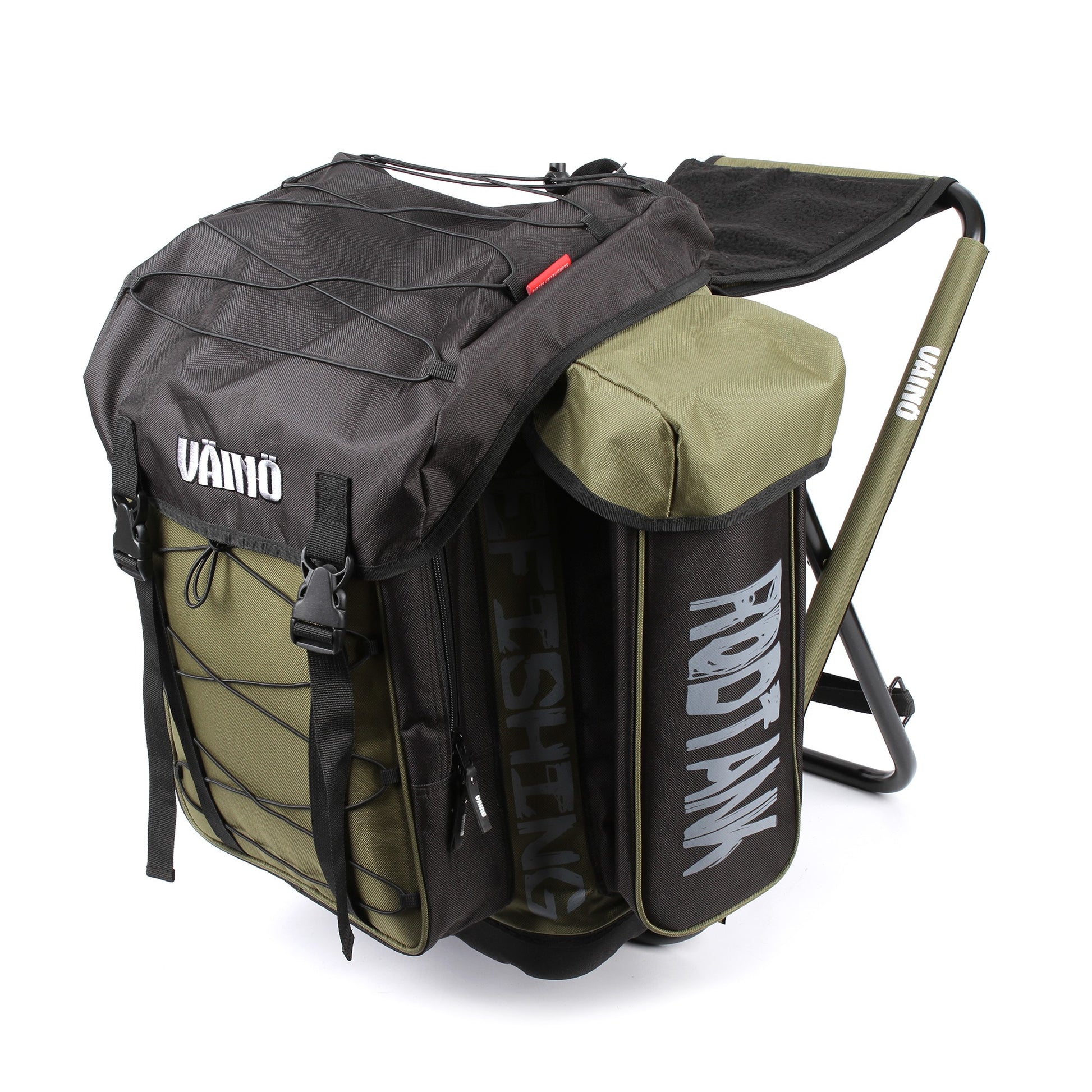 Väinö Tank 50L Pilkkireppu / ReppujakkaraVäinö Tankkiin saat takuulla mahtumaan kaiken mitä pilkkipäivääsi tarvitset eväitä myöten. Valtava 50 litran tilavuus, iso määrä taskuja ja pakkaushihnat ulkopuolella.Väinö Tank on 50 litran reppujakkara, joka on suunniteltu kaikki pilkkijän tarpeet huomioonottaen. Repun etuosassa on iso tasku, minkä sisältä löytyy pienemmät taskut esim. morrivavoille. Taskun etupuolella on kiristysnauhat joihin saat laitettua kaikkea tarpeellista. Päätaskun lipassa on myös lisätasku ja kiristysnauhat. Sivutaskuista löytyy yhteensä 6 eri lokeroa 70-90mm pilkkivavoille. Päätaskun sisällä on irroitettava osiointi, joka mahdollistaa paikat termospullolle, eväille ja tarvikkeille. Repun pohja on vedenpitävä. Lämmityskarva istuimen päällä on irroitettava.SpeksitErittäin suuri 50L tilavuusIstumakorkeus 45cmPäätaskun väliseinät irroitettavissaTermospullotaskuTaskut 50mm morrivavoilleSivuilla 6 erillistä taskua 70-90mm vavoilleLämpöistuin, 24x30cmMateriaali: 1000D polyesteri, erittäin kestäväVedenpitävä pohja